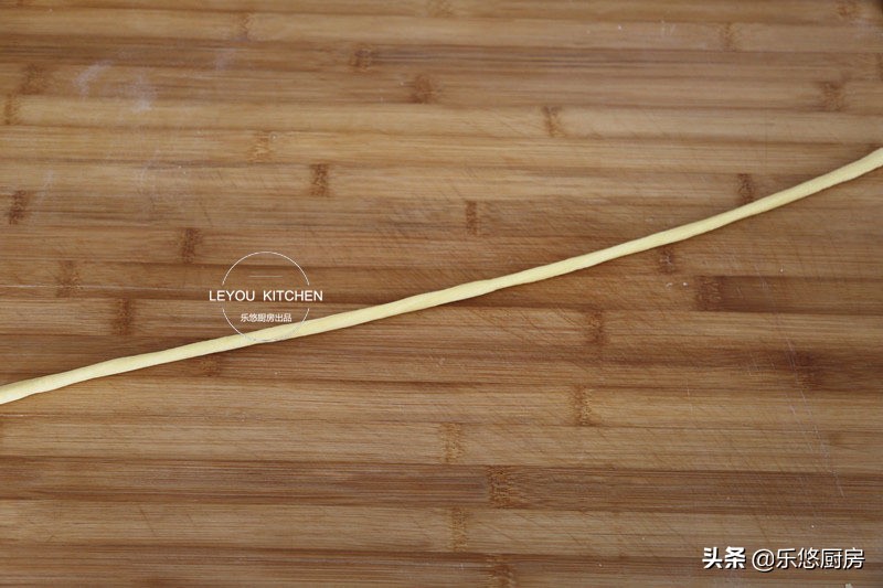 第六步:取一根切好的长条,搓成80厘米长的细条,如图。