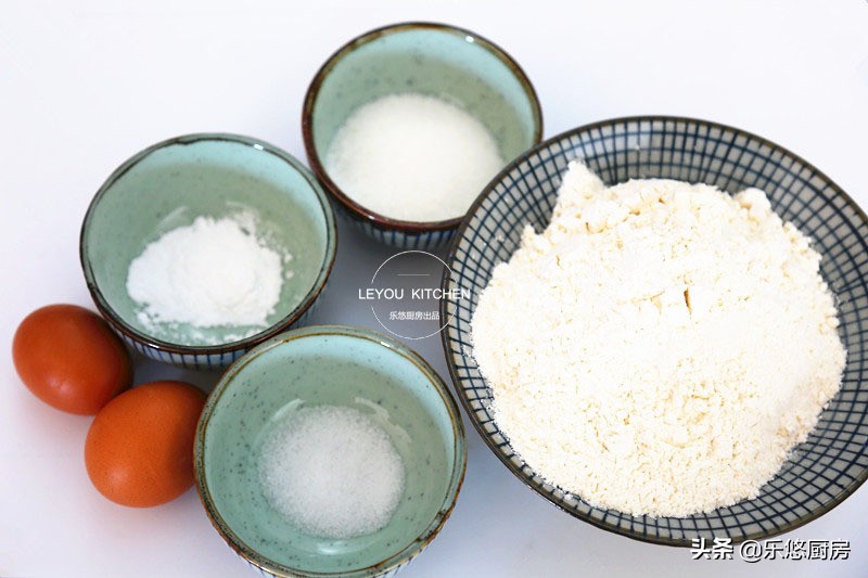 第一步:准备食材。普通面粉300克、鸡蛋2个、白糖20克、水60毫升左右、盐2克、小苏打2克。