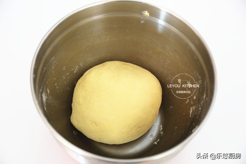 第三步:揉成表面光滑、软硬适中的面团。然后盖上保鲜膜,松驰10分钟。