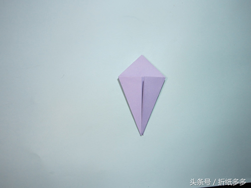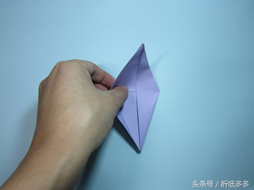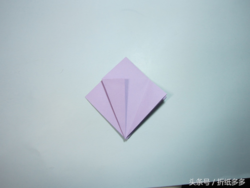 第9步、将下面的角翻折上去,再把中间的折痕压一压。