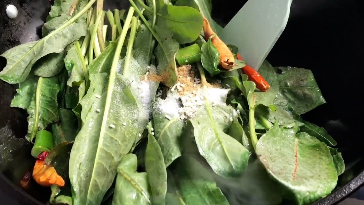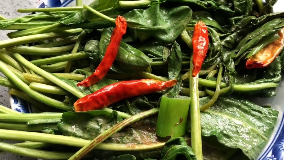 准备食材:野菠菜、葱姜、辣椒、胡椒粉