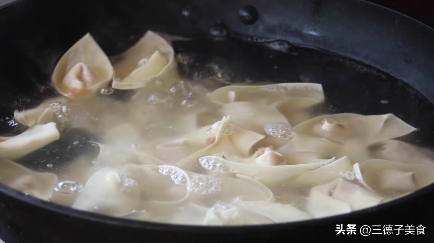 5、锅里烧水,水开下抄手,抄手熟后盛入打好蘸料的碗中。