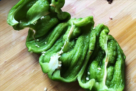 2、第二要记住的是,辣椒炒肉的顺序,一定要提前把辣椒炒到表面起皱,然后再来炒五花肉,最后再将两者混合。