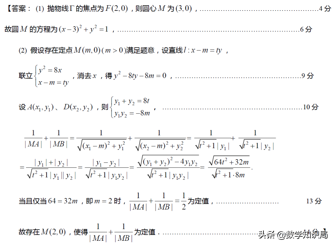 点评:这道题的特色就在于该题使用了通用弦长公式的另一套公式,联立方程消元的时候消的是x。