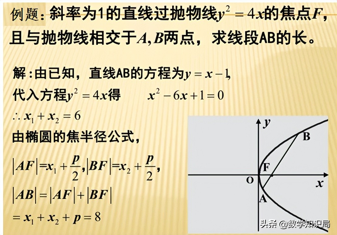 特别注意:该公式只适用于焦点弦,如果AB直线不经过焦点,不能用!不经过焦点,还是老老实实用通用弦长公式。