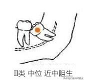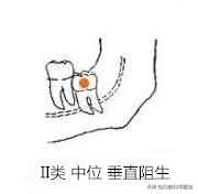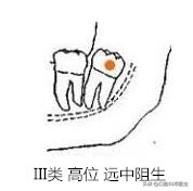 低位:牙的最高部位低于第二磨牙的牙颈部。骨埋伏阻生(即牙全部被包埋于骨内)也属于此类。