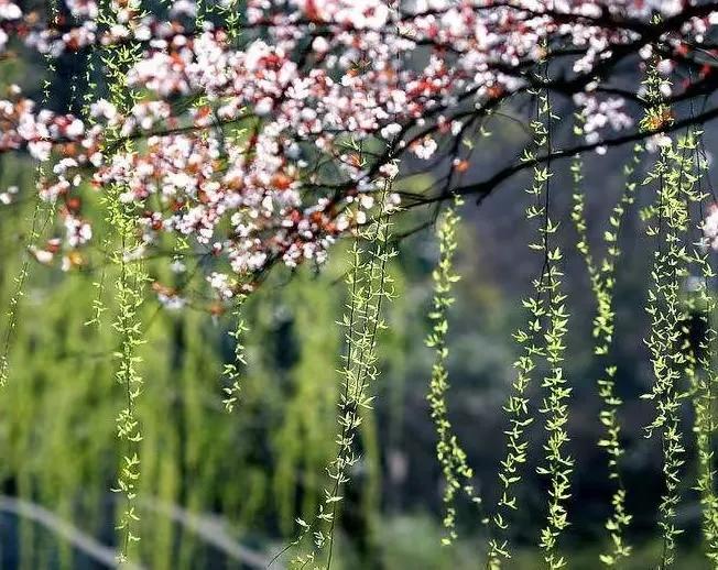 8、迷蒙的双眼渗入烟雨,满山遍野的草木花枝,被唤醒,风拂柳曳,春天到了。