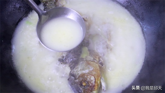 这样煮好的鲫鱼汤味美汤浓,营养丰富,颜色也是奶白奶白的,一次可以喝上一大碗。