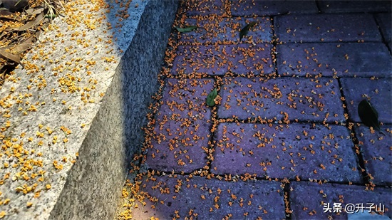 趁着桂花还未全部掉落,赶紧又去摘了些新鲜桂花,学学小蜜蜂酿点桂花蜜吧。摘桂花的时候是忐忑的,毕竟桂花是长在路边不是长在自己家里,可见到掉落在草丛与地上的满地桂花,觉得自己是来拯救桂花,给它们安排个更体面的去处,总比掉入泥淖中强,于是心安理得些了。