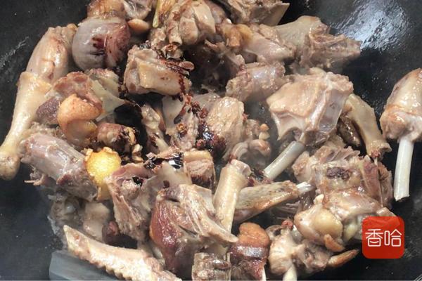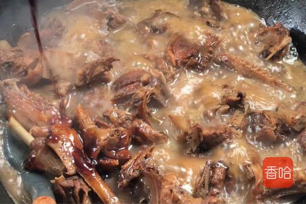 12.加入啤酒(啤酒要盖住鸭肉)煮沸后,盖上锅盖小火焖半小时
