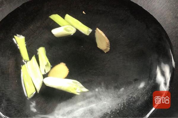 7.再起锅热油,放入剩下的姜片,和蒜片爆香