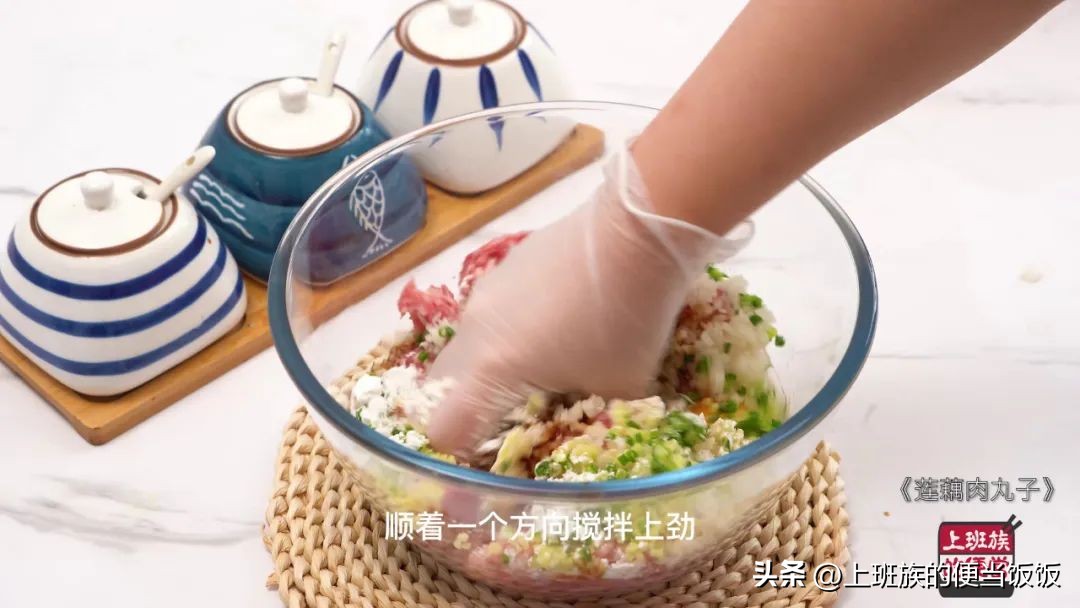 顺着一个方向搅拌上劲,肉丸才不会散!