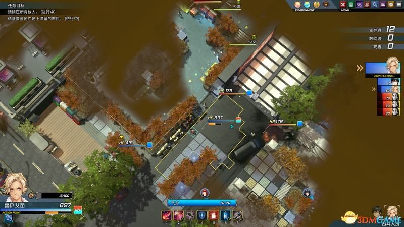 水池中央的平民女孩是个奶妈,需要的话让掉血的队友前去救援可以加血。
