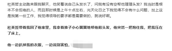 杜老师的辩解里还有一个槽点,就是他称自己是影视圈中人,字里行间处处传达出 " 你必须接受我的洗脑,才能适应这个圈子的生存法则 "。