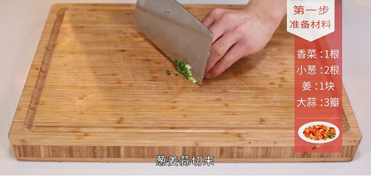 1.香菜洗净切段,葱姜蒜切末。