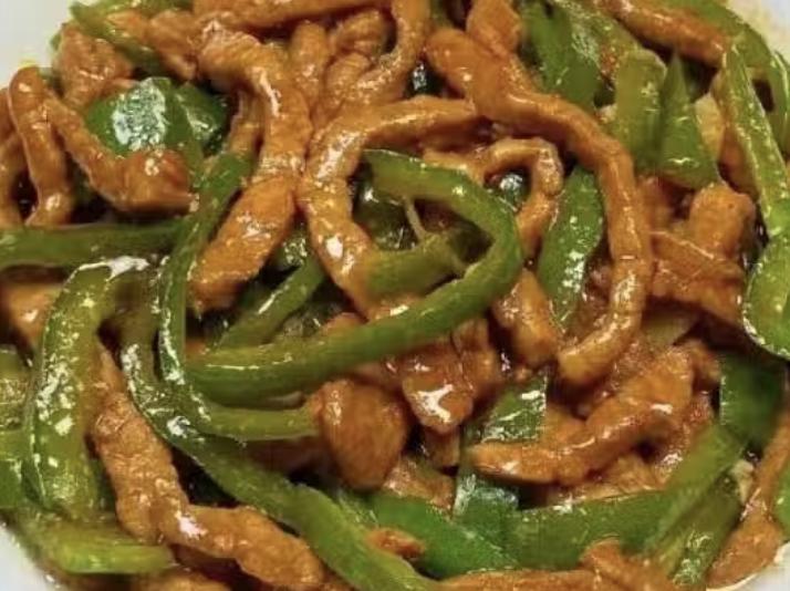 青椒最后放,大火快炒保留脆感和清香,不要炒太久变黄塌软。