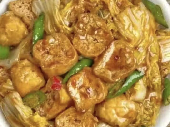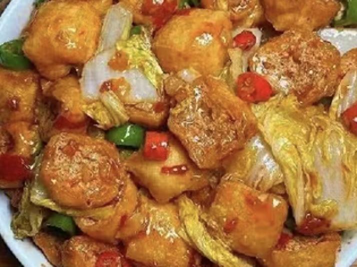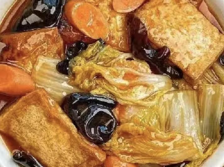 豆腐泡吸满酱汁,配上软烂的白菜,越吃越暖胃,是那种会让人想起家的味道。