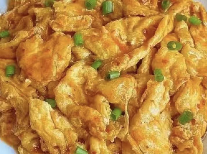 鸡蛋不用炒太散,保留大块形态更有口感,淋酱汁后也更容易挂汁。
