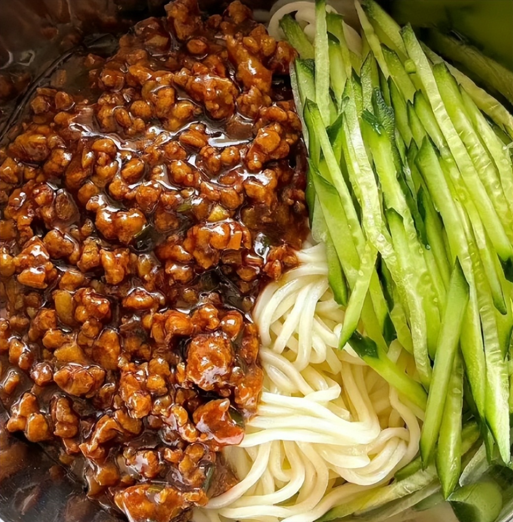 老北京的炸酱面,精髓全在一碗酱里。黄酱或甜面酱加肉丁炸香,煮好的手擀面捞出,拌上炸酱,再码上黄瓜丝、豆芽、青豆等“菜码”,讲究点的人家能摆出一桌“七碟八碗”。这碗面吃着不花哨,却有浓浓的胡同烟火气,是北京家庭餐桌上最常见的一口。
