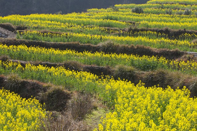 清明前后是油菜花的高峰期。金黄色的油菜花铺满山坡和田野,白墙黛瓦的徽派建筑散落其中,这个画面的特殊性在于:徽派建筑和油菜花之间的搭配,在其他地方很难找到同等密度的组合。