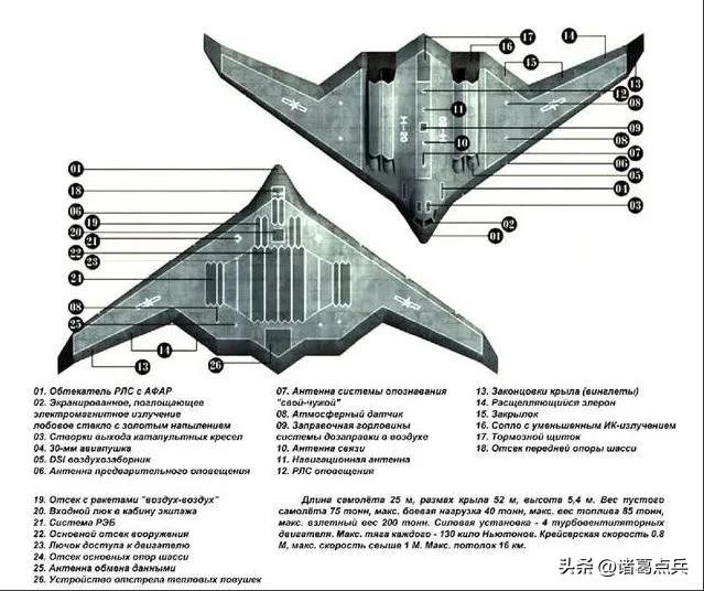 3. 气动布局:B2采用非翼式气动布局,没有传统飞机的垂直尾翼,而是采用特殊的设计来保持稳定。