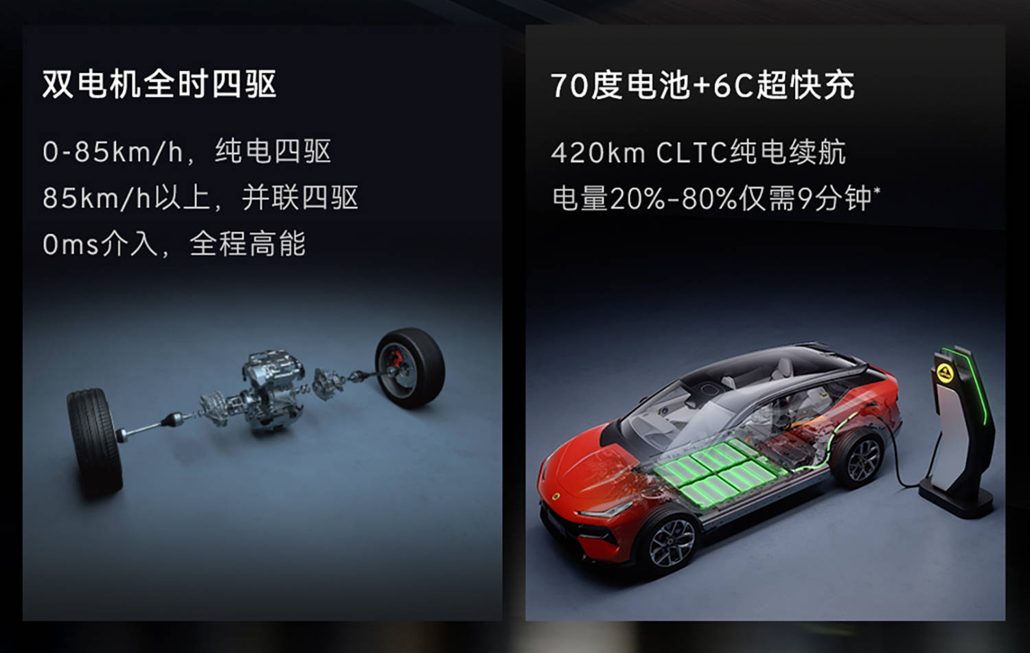 驾控层面,LTS(Lotus Tuned Specification)专属调校体系贯穿整车,23个传感器、39组信号通道每秒1000次计算姿态,搭配双腔空气悬架、双阀CCD减震、48V主动稳定杆、Brembo六活塞卡钳,120公斤净下压力空力套件全系标配。