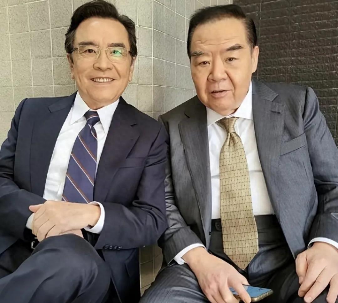 俩人同坐一排,面带和蔼的笑容面向镜头,看起来关系很融洽的样子,不过,郑则仕模样变化太大了。