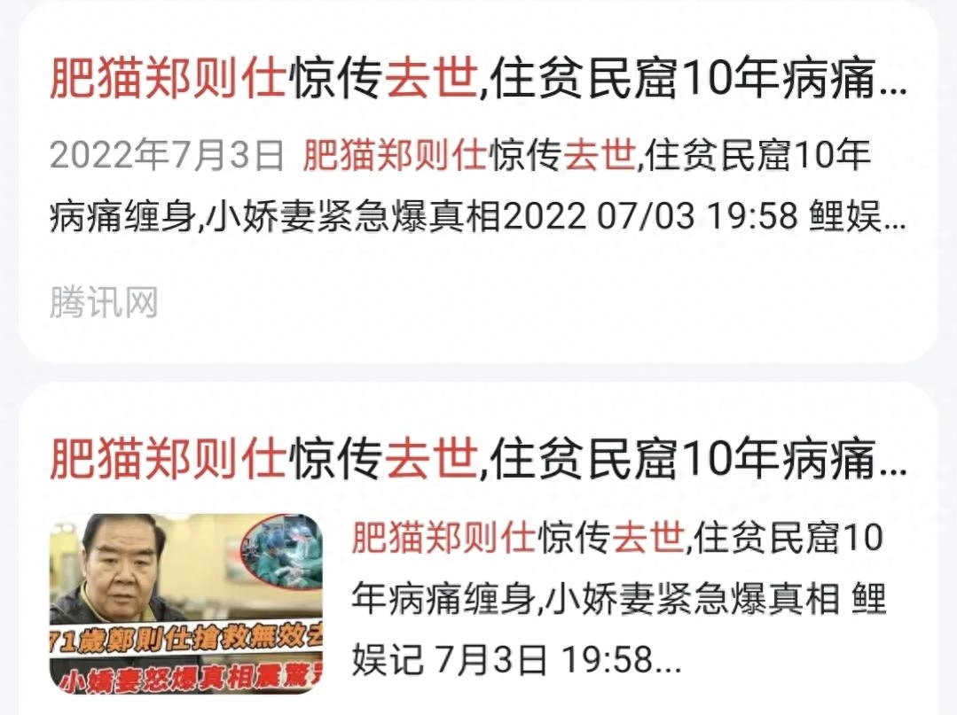 然而肥胖更易影响身体健康,前几年郑则仕一直被传去世,虽然后来被证实为假消息,但仍有2G上网的网友对此真相不清不楚。