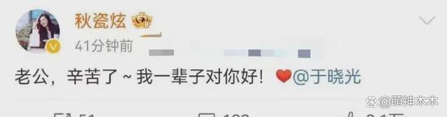 几个小时后,秋瓷炫发博 " 老公,辛苦了 ~ 我一辈子对你好!" 并艾特了于晓光,明晃晃的示爱撒狗粮。