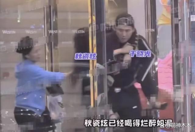 26 日,有媒体拍到秋瓷炫一家与好友聚餐到凌晨,喝的很是尽兴。散场之后先是司机把儿子抱上车,秋瓷炫则趴在老公于晓光身上被背着出门。