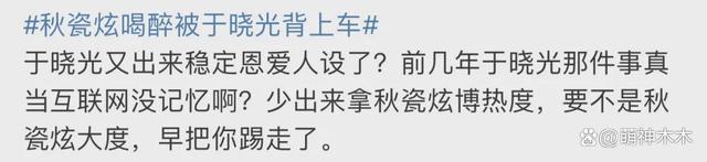 本来是挺甜蜜的一家人互动,可互联网依旧存在着 " 于晓光出轨 " 事件的记忆,网友们对秋瓷炫这番行为就很是难评了。