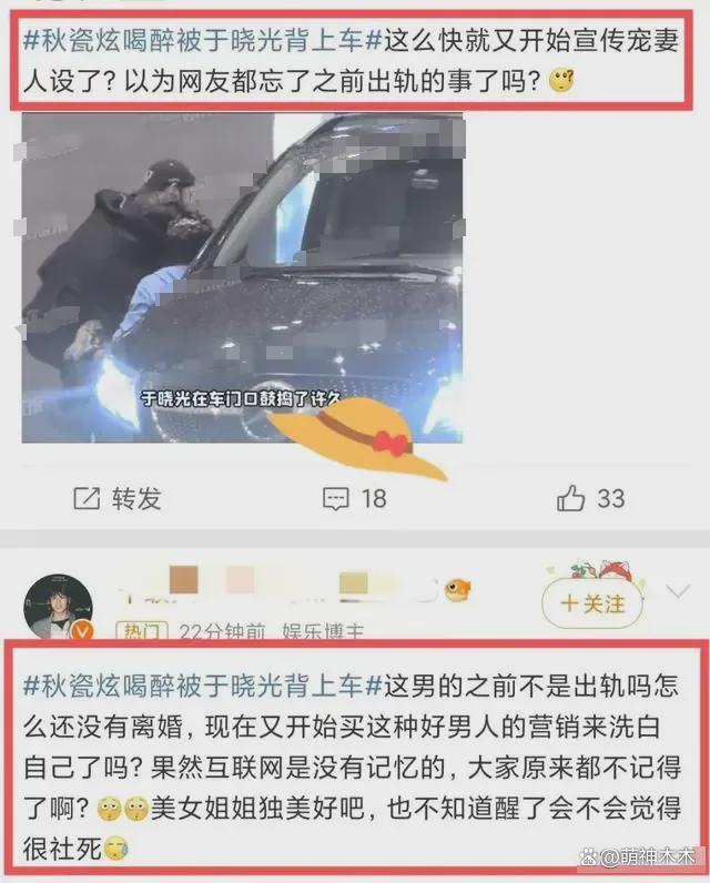 事件一出,一直以 " 好老公 "、" 好爸爸 " 为人设的于晓光瞬间成为舆论焦点,网友们纷纷心疼秋瓷炫。
