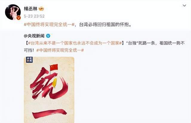 近几日," 台湾艺人纷纷表态支持祖国统一 " 成为热门话题,最早表态的侯佩岑、张韶涵等人立场坚定,而后 " 查漏补缺 " 的台湾艺人不仅表态时间晚,文案措辞也是藏了小心思。5 月 25 日,央视新闻官方将立场明确表示 " 台湾必将回归祖国怀抱 " 的台湾艺人一一截图展示,让那些私自改动文案妄图蒙混过关的台湾艺人瞬间被打脸!