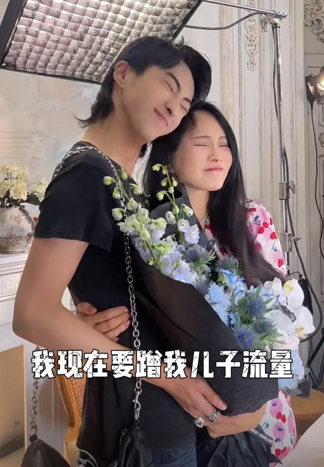 伊能静获儿子惊喜探班,亲吻恩利,自称要蹭儿子的流量