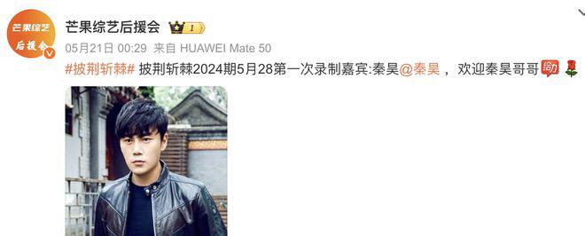 据悉,秦昊将参加披荆斩棘。