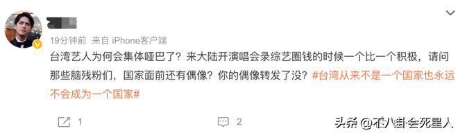 台湾艺人转发“台湾不是一个国家”,仍有很多大咖沉默
