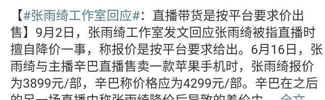 张雨绮最近也是惹上一个麻烦,一个带货主播公然直言张雨绮没给1200万给辛巴。