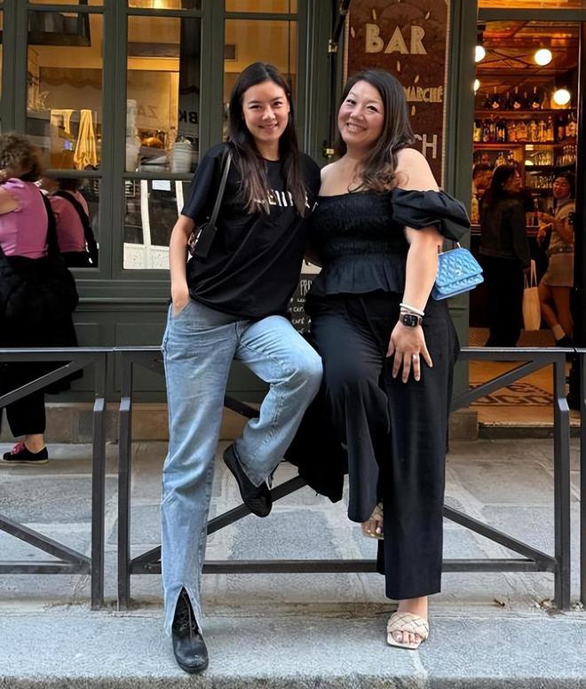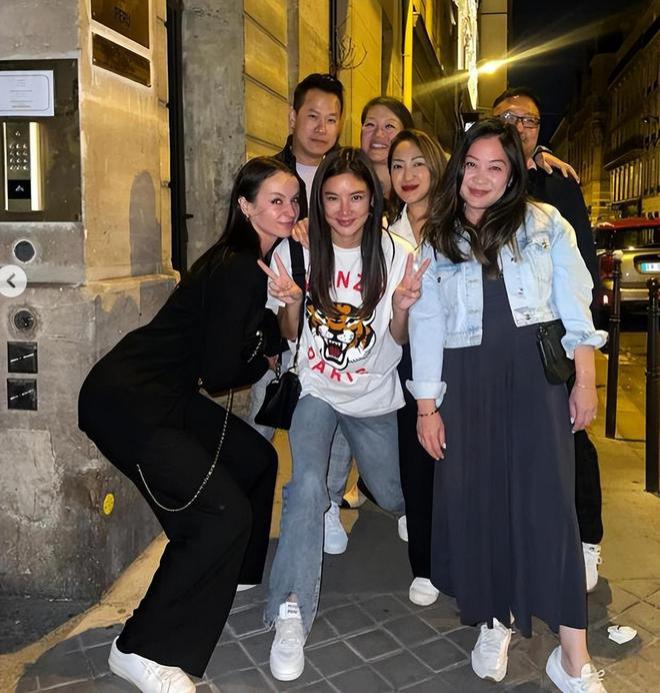 做个对比,上图是乐基儿的近照,和一圈国外好友逛街聚会,生活舒适又放松。