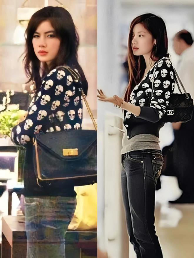 再回到她 20 年前牛仔裤和长腿风格的打扮上面,当时国内还刮起了一股乐基儿穿搭的风潮,直到现在,仍旧还有人模仿乐基儿当年的穿搭。