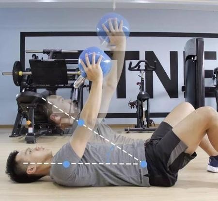 1.轻杠铃片放在手上,整个人贴在瑜伽垫上,用腹横肌的力量缓慢向上抬起,记住是向上而不是向前。