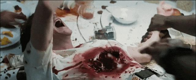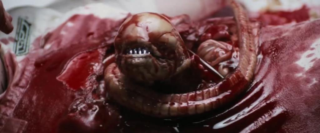 由此诞生的异形从人体破胸而出的场面,也成为八十年代观影人的噩梦。