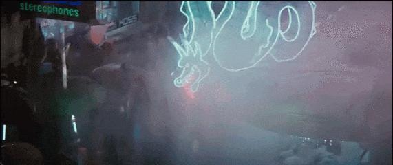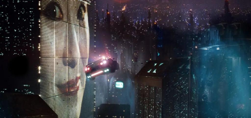 例如舍弃一般视角,用逐渐拉近的俯视镜头,让《银翼杀手》的街头看起来更拥挤,也更有层次。