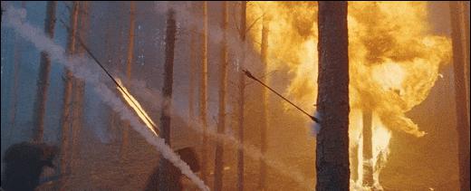 两军交锋,万箭齐发,火烧针叶林。
