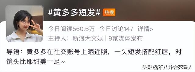 日前,黄多多在个人社交平台账号上分享日常照,也引起了网友们的围观,甚至话题#黄多多短发#还上了实时热搜。