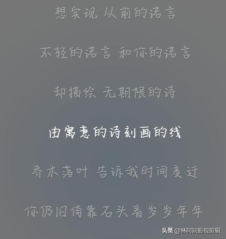 “乔木落叶 告诉我时间变迁,你依然依靠石头看岁岁年年 惊觉两鬓霜白长叹一声哀怨 也不过匆匆弹指间”