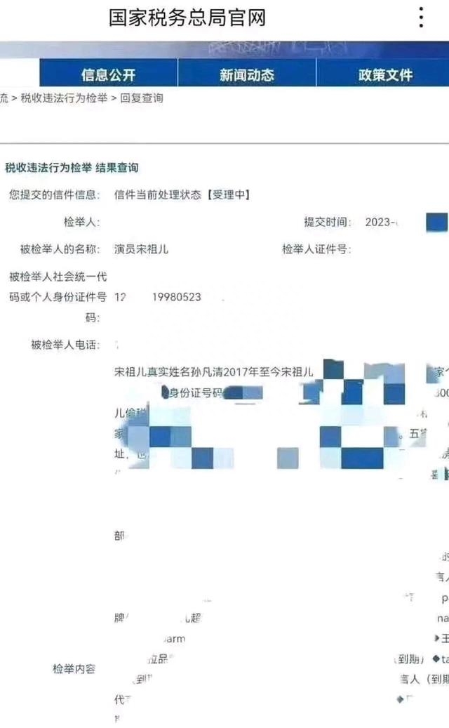事情一开始,是网友发现宋祖儿在国家税务局被举报的信息,随后将这个信息发布到网上,一下子引来了众多粉丝关注。