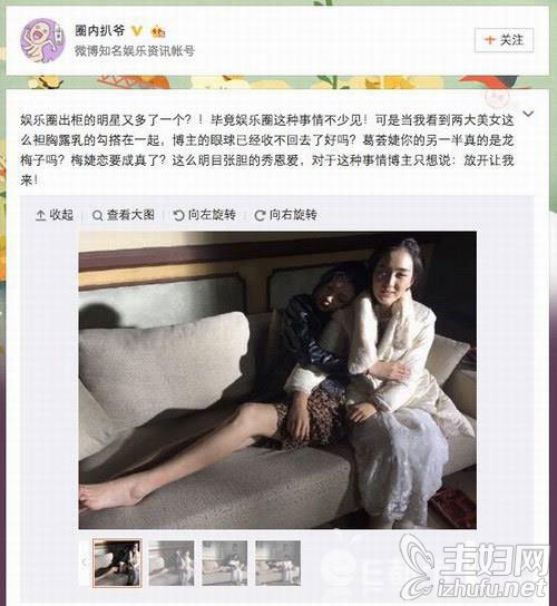 近日,娱乐圈大号@圈内扒爷爆出惊人消息,称汪峰前妻葛荟婕与当红歌手龙梅子疑似“出柜”。并且爆料者还上传了葛荟婕龙梅子亲密出柜照片。此微博曝光后,掀起网友热议话题。不少网友还调侃到:“在一起吧”。