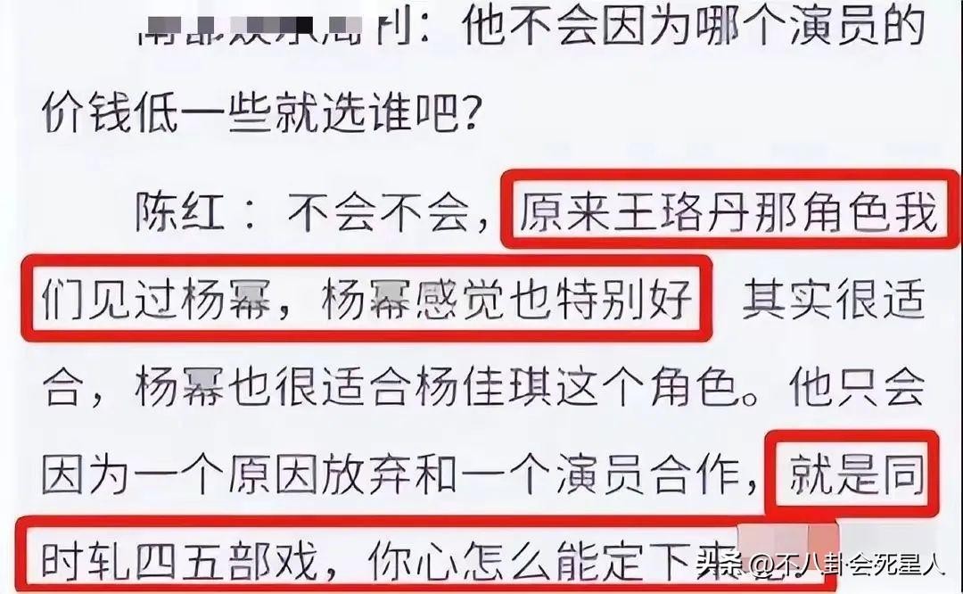 电影上映时,陈红接受采访还内涵了杨幂的轧戏行为。