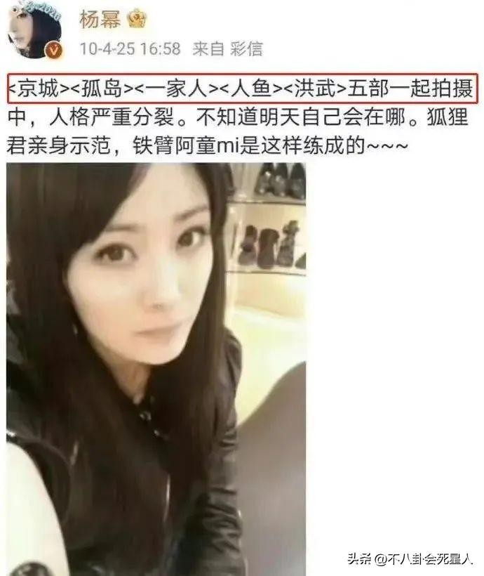 轧戏本来在影视圈就不是新鲜事,除了小花们,还有不少演员轧戏。早在2010年,杨幂就发文自豪地表示自己五部剧一起拍。