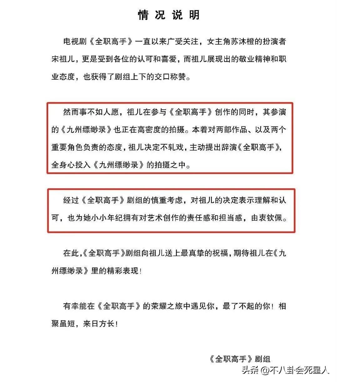 更尴尬的是,此前宋祖儿为了不轧戏,辞演《全职高手》,专心投入《九州缥缈录》的拍摄。